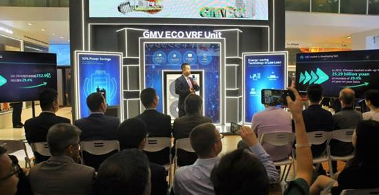 10月16日上午,格力電器在其展位舉行了格力新一代節能商用空調GMV ECO多聯機新品推介會,吸引了眾多海內外參展者的目光。