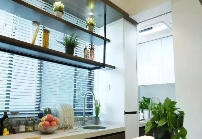 改造后,廚房被分隔出了中西廚兩個空間,解決了烹飪時的擁擠問題。設計師為業(yè)主考慮了大金高耐久廚房用嵌入式室內(nèi)機。小蔡在做中式爆炒菜肴時常常汗流浹背,很是煎熬;妻子小青擅長的西式甜點更需要恒溫的環(huán)境來保持食材的新鮮,這款廚房專用空調(diào)可以定點清涼科學送風,使人倍感舒爽。抗油污面板和濾網(wǎng),能保護機器的長久使用。